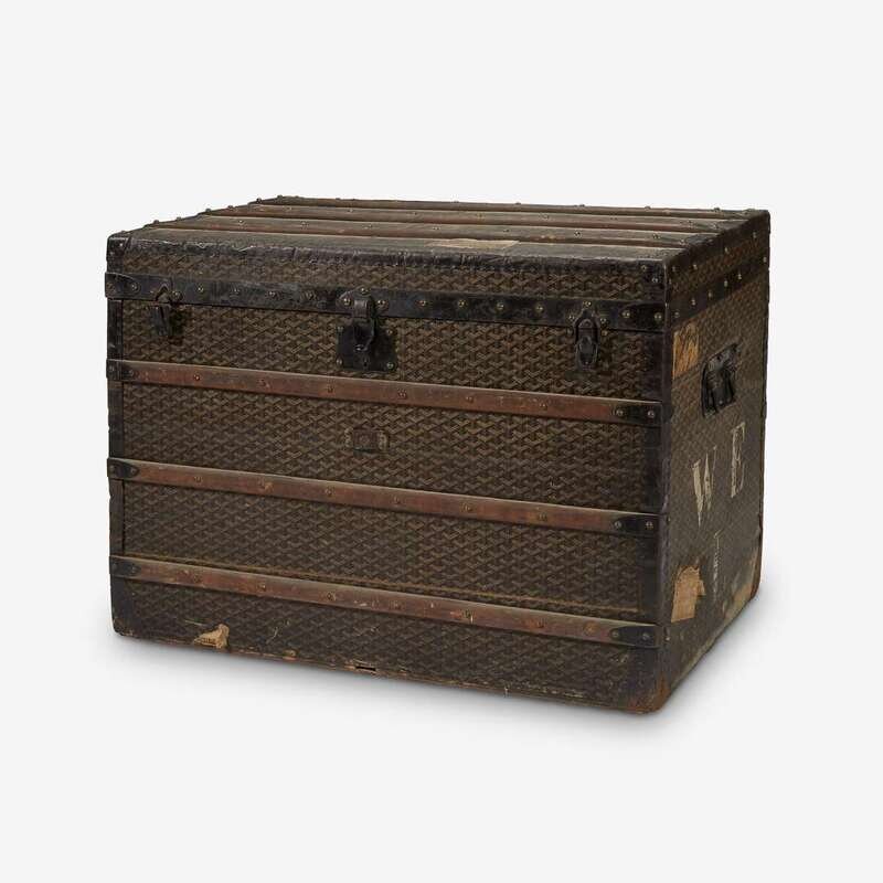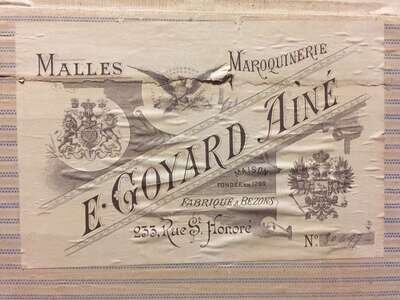 A large Maison Goyard printed canvas covered traveling trunk early 20th century
