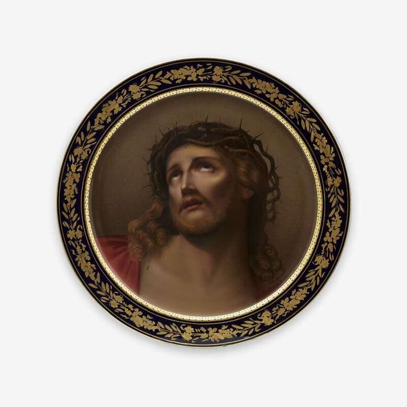 A large Royal Vienna style hand-painted and parcel-gilt porcelain charger "Ecce Homo", last quarter 19th century