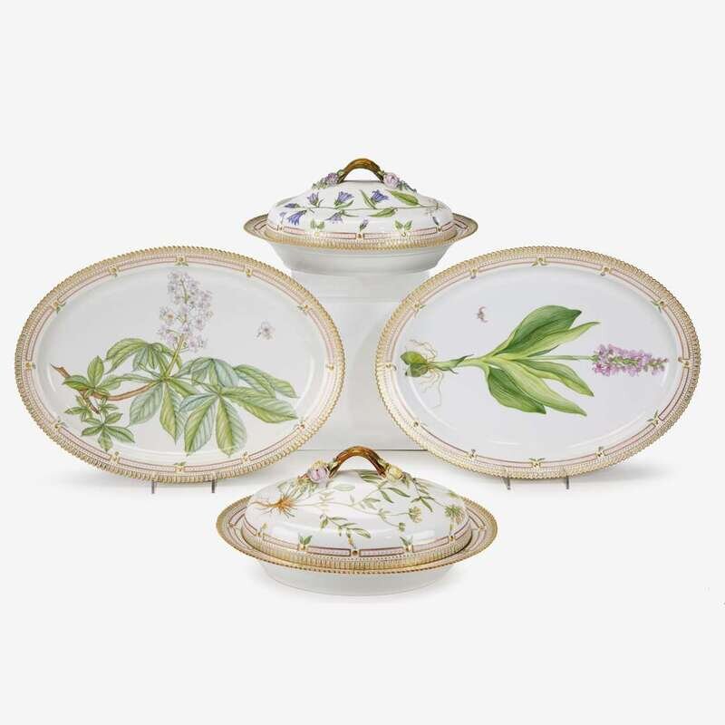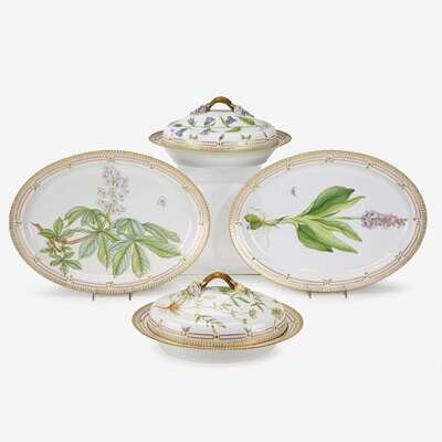 A group of Royal Copenhagen Flora Danica serving dishes date code for 1985-1991