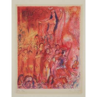 MARC CHAGALL (FRENCH/RUSSIAN, 1887-1985) "THEY WERE IN FORTY PAIRS"PLATE 2 FROM "FOUR TALES FROM THE ARABIAN NIGHTS"