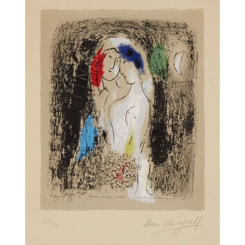 MARC CHAGALL (FRENCH/RUSSIAN, 1887-1985) "LOVERS IN GREY"