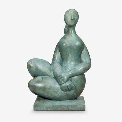 BALTASAR LOBO (SPANISH, 1910-1993) "FEMME ASSISE MAIN CROISÉES GRANDE TAILLE"
