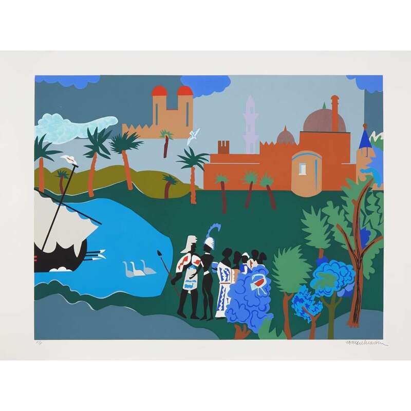 ROMARE BEARDEN (AMERICAN, 1911-1988) "ODYSSEUS LEAVES"FROM "THE ODYSSEUS SUITE"