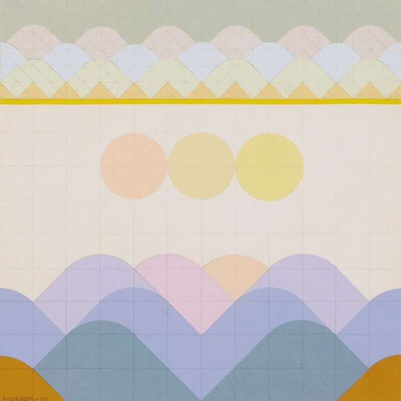 EDNA ANDRADE (AMERICAN, 1917-2008) "CRATERS/PINK SKY/THREE MOONS"