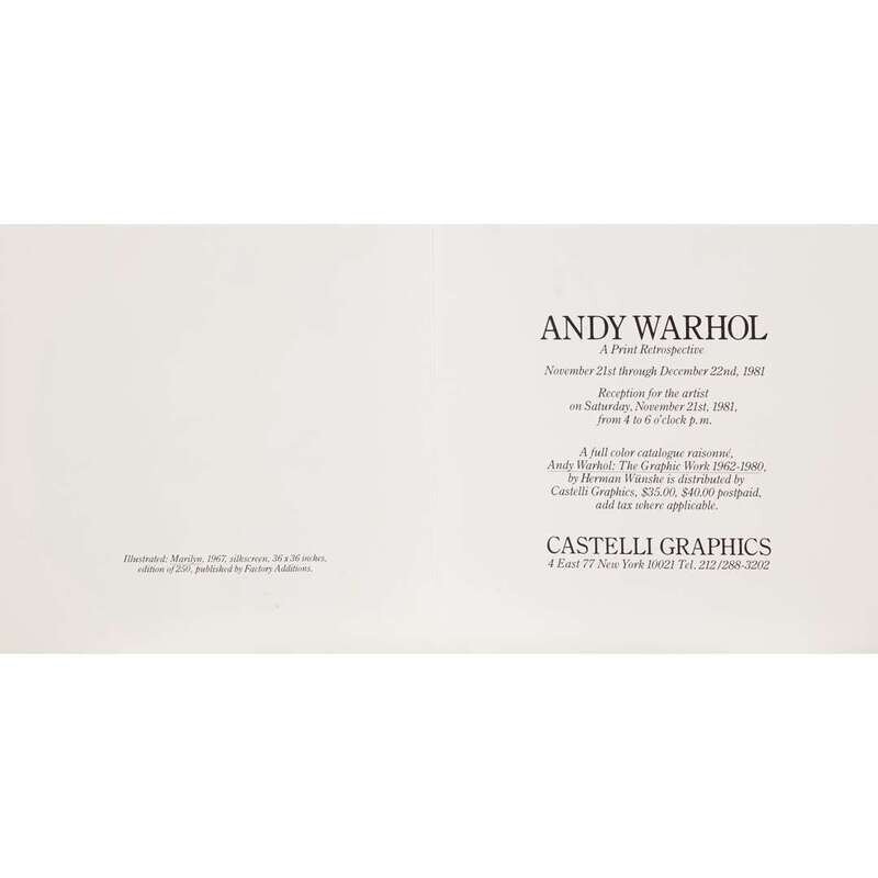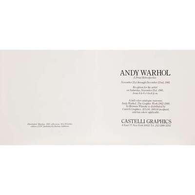 AFTER ANDY WARHOL (AMERICAN, 1928-1987) MARILYN (CASTELLI GALLERY INVITATION)