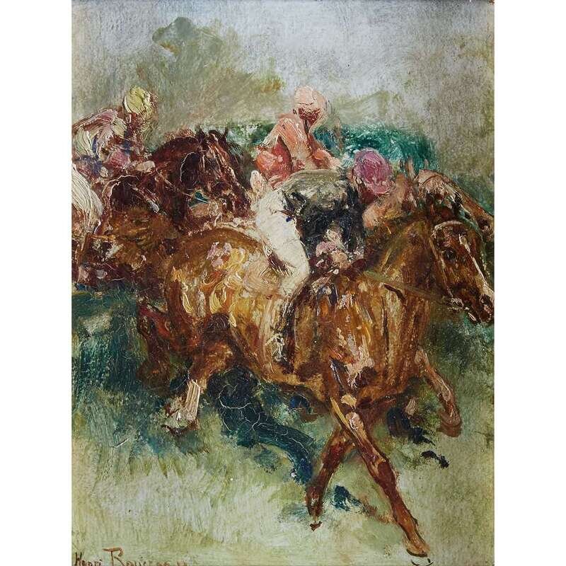 HENRI EMILIEN ROUSSEAU (FRENCH 1875-1933) JOCKEYS TAKING THE FENCE