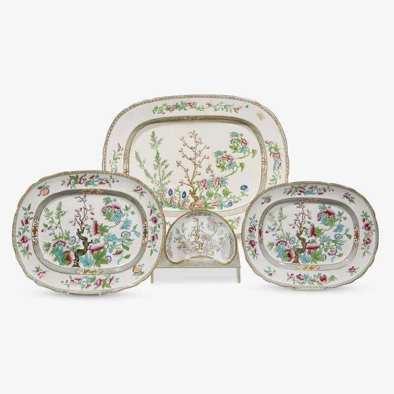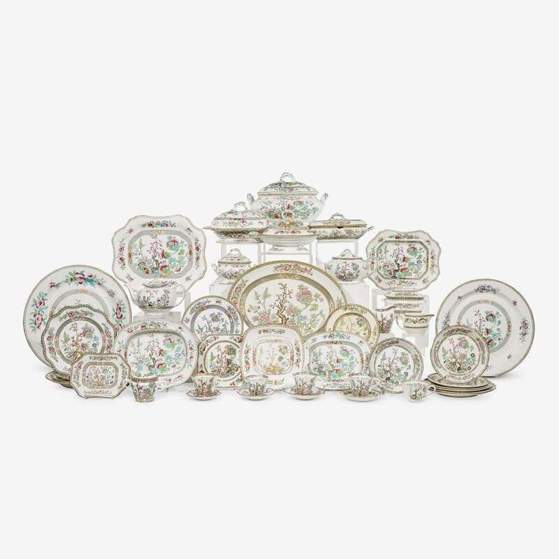 Twenty-six box lots of china in the 'Indian Tree' pattern from various English manufactures and dates, including dozens of serving platters, trays, and tureens; numerous dinner services and tea services; and additional miscellaneous pieces; 26 boxes.