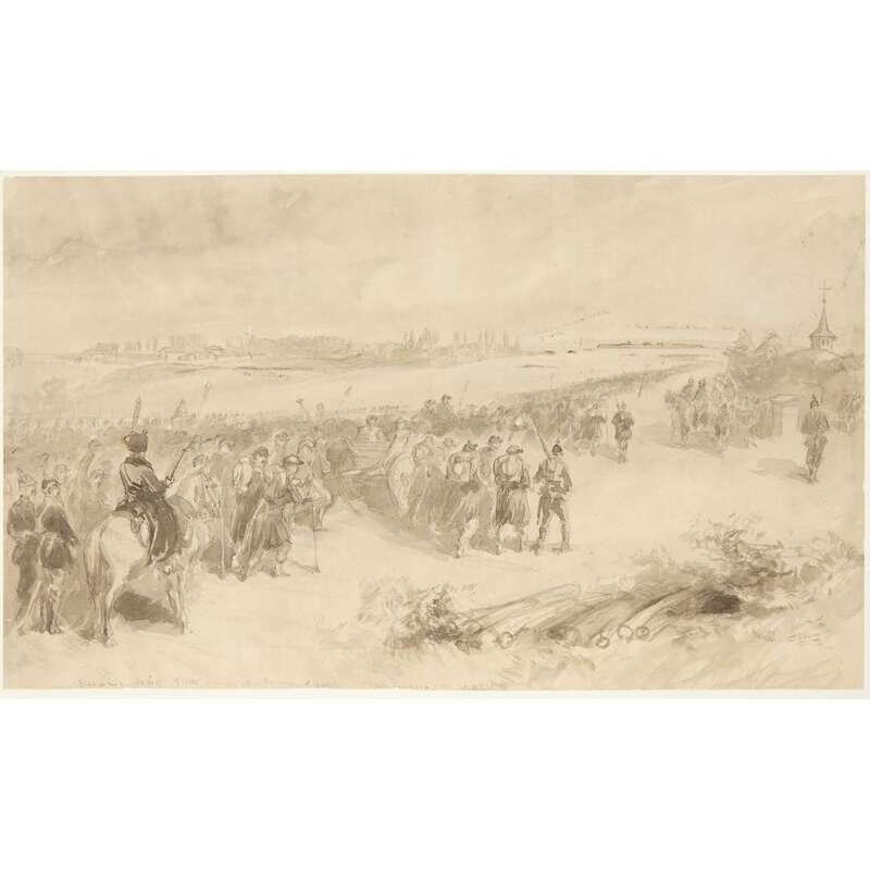 WILLIAM SIMPSON (BRITISH 1823-1899) "BAZAINE'S ARMY OF METZ MARCHING OUT AS PRISONERS OF WAR"