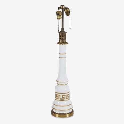 A neoclassical style gilt-bronze mounted parcel-gilt Paris porcelain lamp 19th century