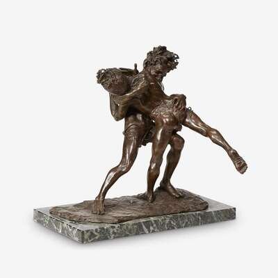 A bronze sculpture of two wrestling boys 20th century