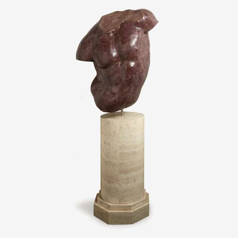 A porphyry mosaic-veneered classical torso on marble-veneered pedestal 20th century
