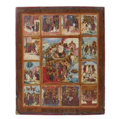 A Russian Icon of Scenes from the Life of the Theotokos Moscow School, late 19th century