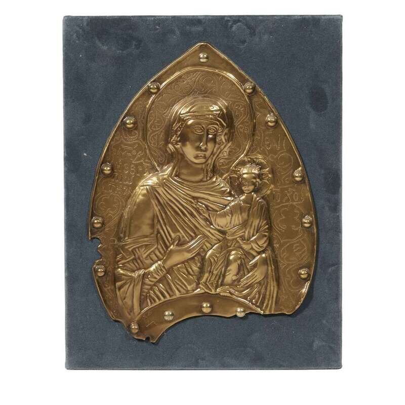 A brass repoussé Icon of the Mother of God Possibly Greek