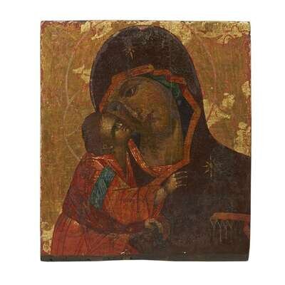 Fragment of a larger icon depicting the Vladimir Mother of God in traditional style.