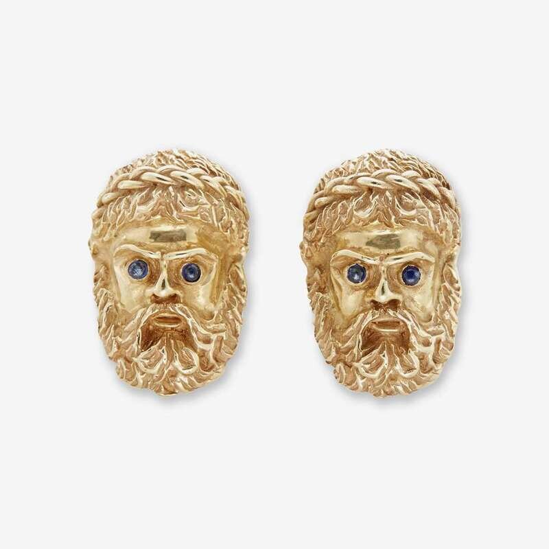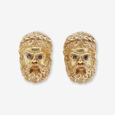 A pair of continental gem-set 18K gold "Hercules" cufflinks Signed Heidi T, 18k