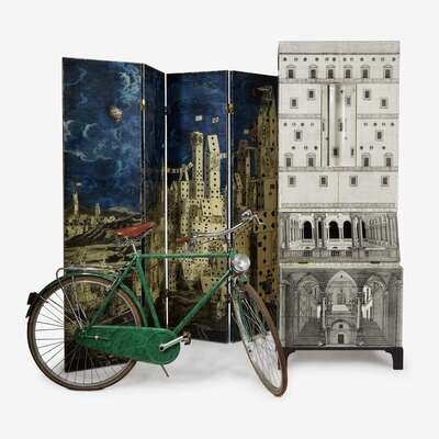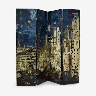 An early Fornasetti 'Citta de Carte' and 'Bosco' printed folding screen Piero Fornasetti (Italian, 1913-1988), Milan, Italy, 1950s