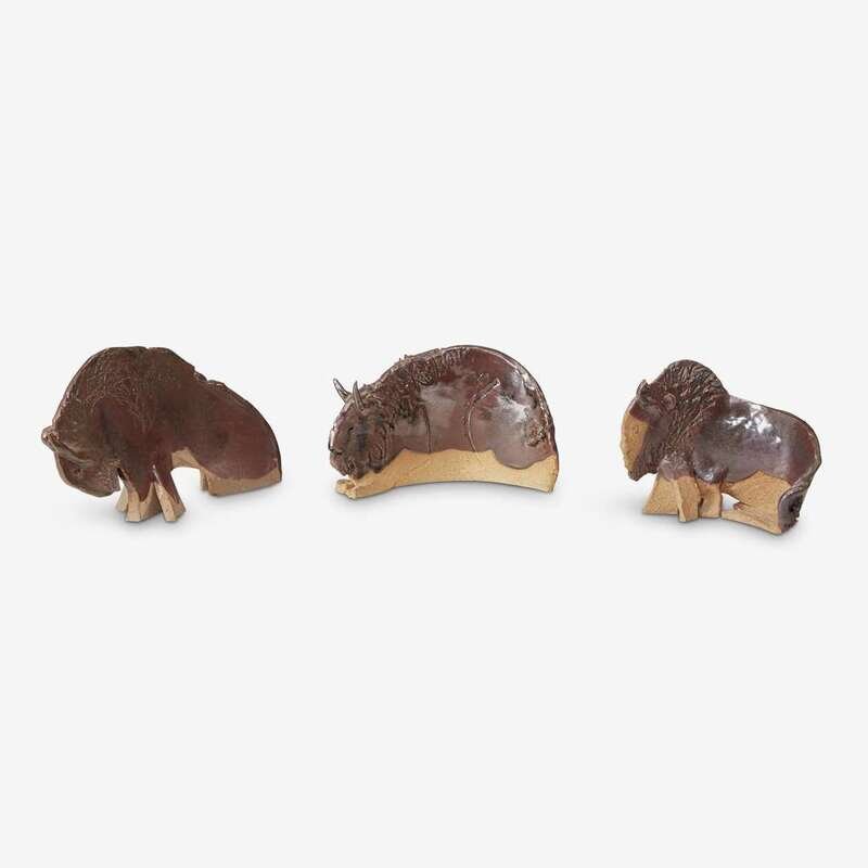 Three abstract glazed stoneware bison 20th century