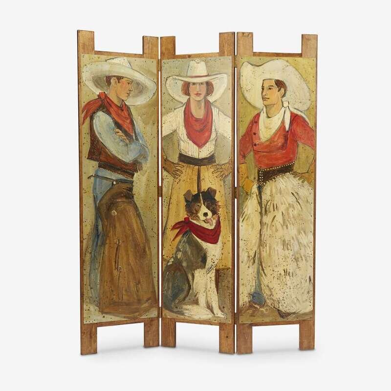A folding floor screen painted with cowboys Carla Palmese (California), 20th century