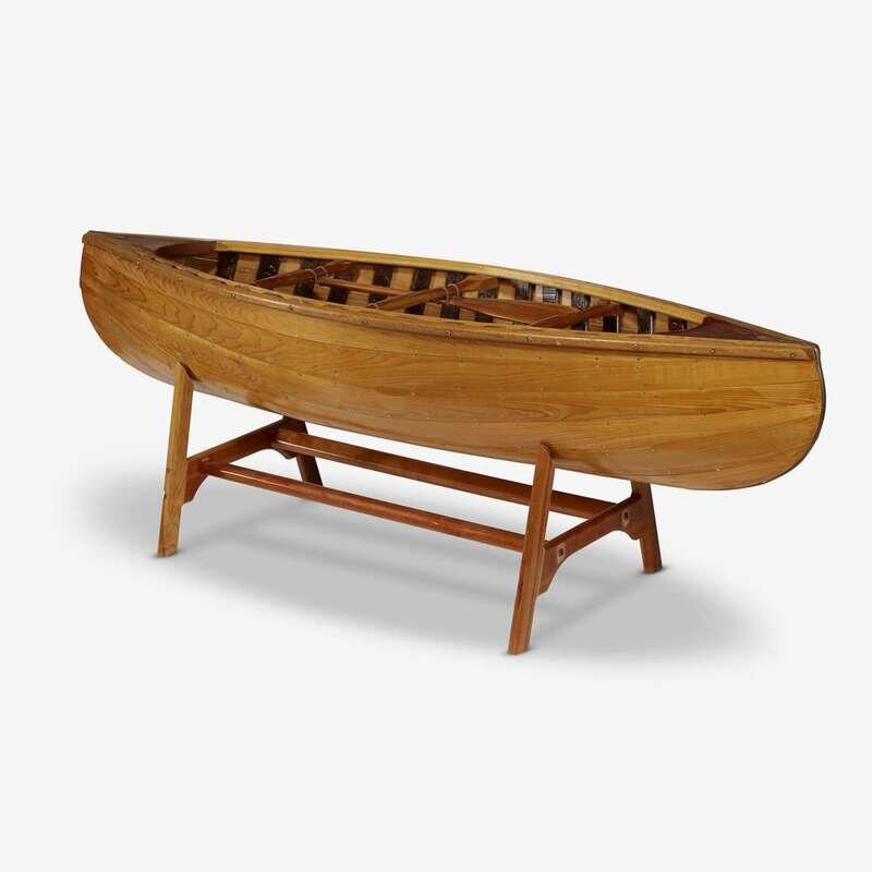 A coffee table in the form of a carved wood canoe on stand 20th century