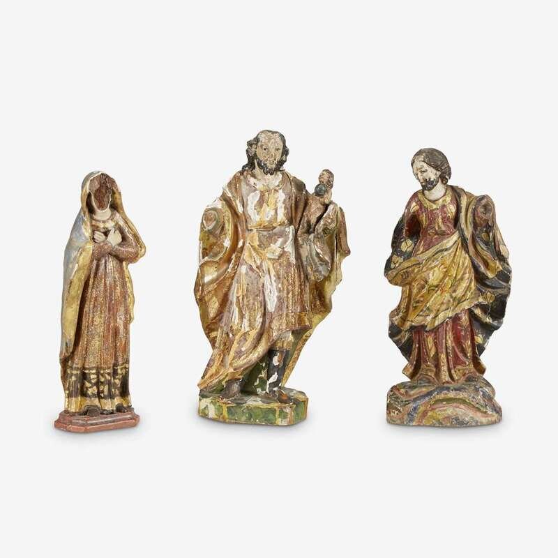 Comprising a figure of St. Joseph with the infant Christ, a figure of the Virgin Mary, and one of a male saint. (3).