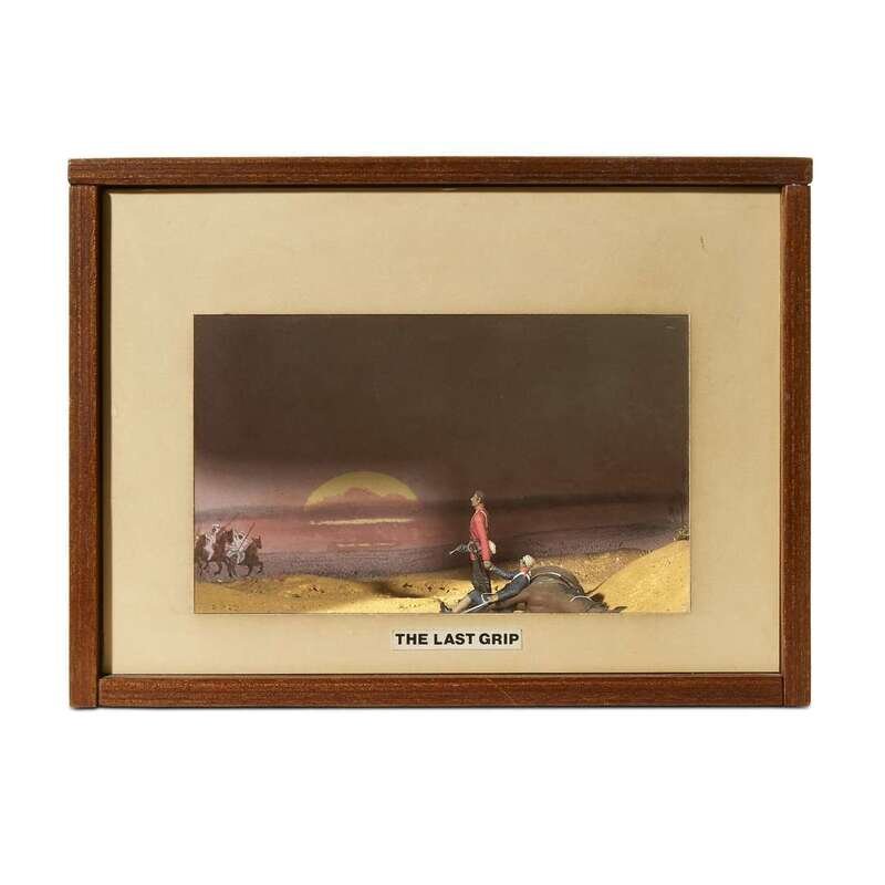 A shadowbox diorama depicting a dying soldier's last moments as he is comforted by an enemy soldier; together with a chromolithograph after Frank Feller (Swiss, 1848-1908), "The Last Grip," signed in plate lower left.