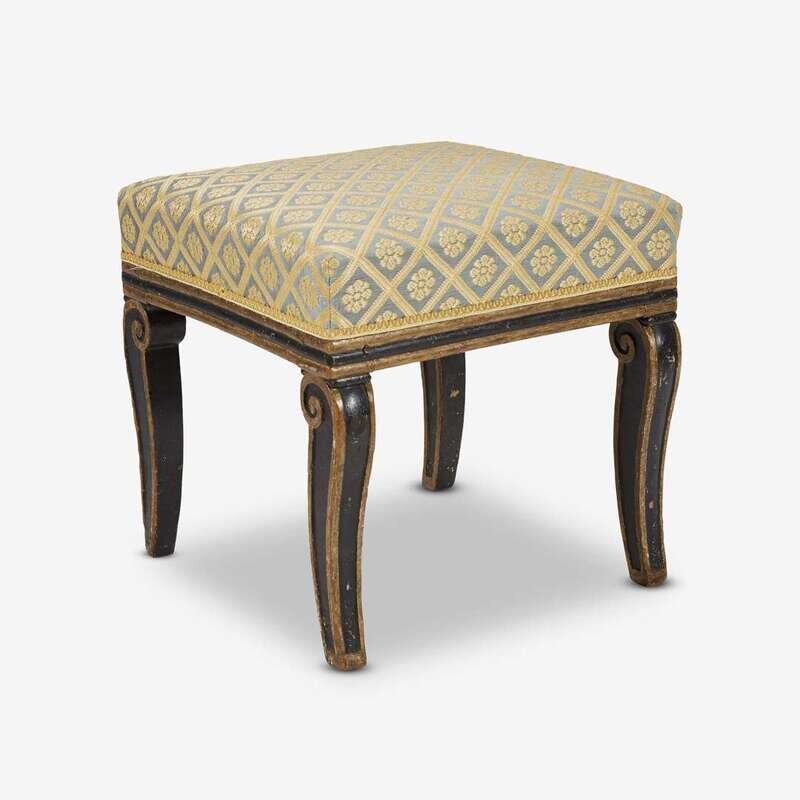 Square, with scrolling volute legs, upholstered in a geometric neoclassical horsehair. The piece marked on frame with the stencilled and painted inventory number TL for the Palais des Tuileries, and LN 4923.