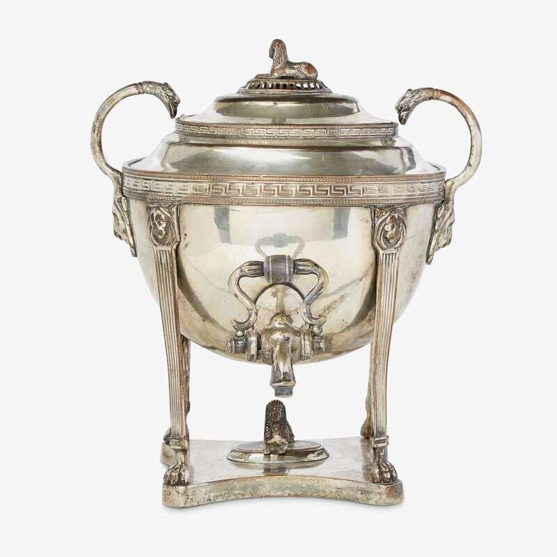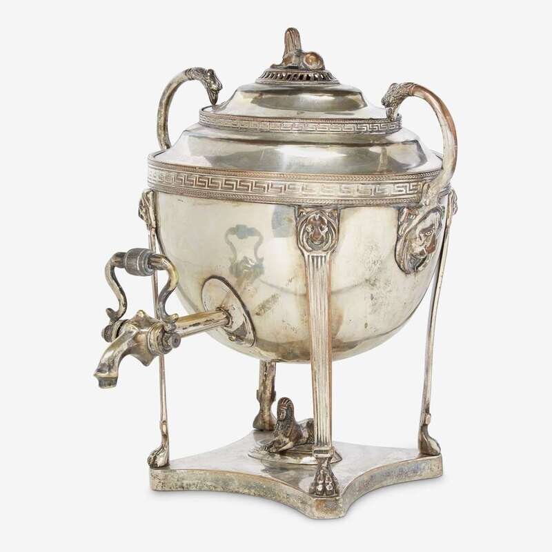 A Regency silver-plated hot water urn in the Egyptian taste Early 19th century