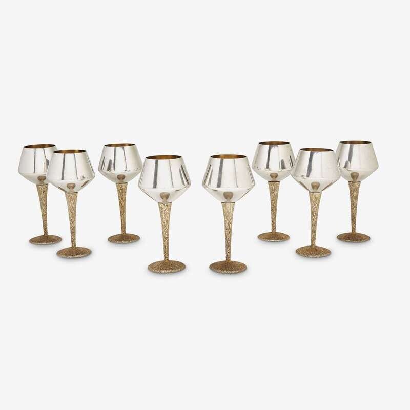 Eight Elizabeth II silver and silver-gilt wine glasses Stuart Devlin, London, 1968-69