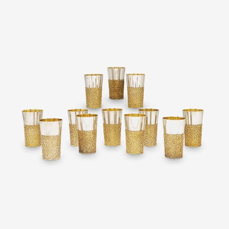 Twelve Elizabeth II silver and silver-gilt small beakers Stuart Devlin, London, 1968-69
