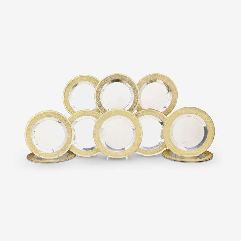 Thirteen Elizabeth II silver and silver-gilt pebbled rim salad plates Stuart Devlin, London, 1968-69