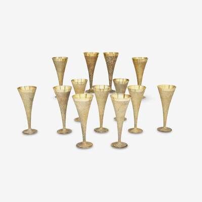Thirteen large Elizabeth II silver-gilt pebbled champagne flutes Stuart Devlin, London, 1968-69