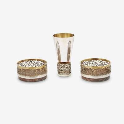 A pair of Elizabeth II silver, silver-gilt and mahogany wine coasters Stuart Devlin, London, 1968-69