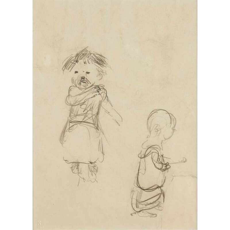 ROBERT HENRI (AMERICAN 1865-1929) "URCHINS" (STUDIES OF TWO CHILDREN)