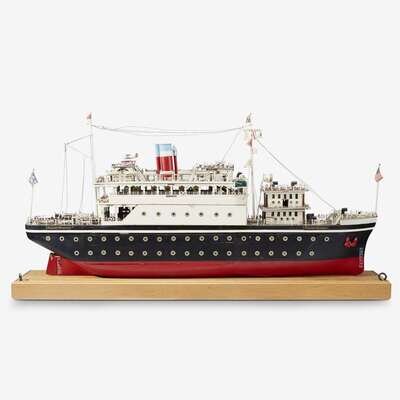 An American twin-screw passenger liner full-hull rigged motorized folk art President Roosevelt 20th century