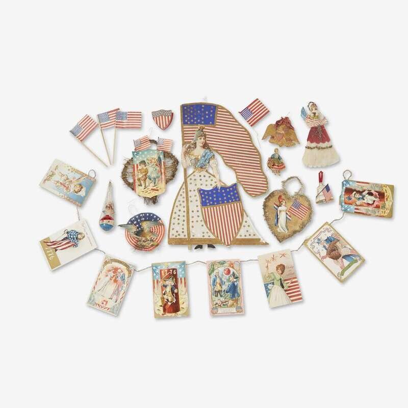 A large group of patriotic Christmas ornaments and ephemera Late 19th through 20th century