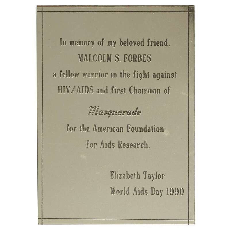 Sold together with a custom metal stand mounted with dedicatory plaque.
