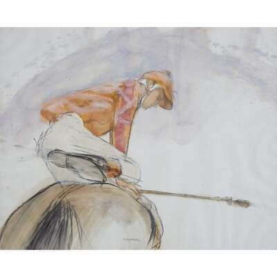 HENRY KOEHLER (AMERICAN B. 1927) "ORANGE JOCKEY MOUNTING"