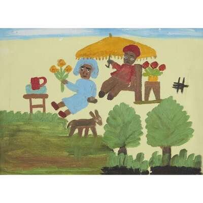 CLEMENTINE REUBEN HUNTER (AMERICAN 1886-1988) LADY WITH UMBRELLA