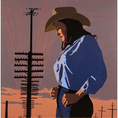 BILL SCHENCK (AMERICAN B. 1947) "JOHN WAYNE DISGUISED AS A LONG DISTANCE COWGIRL"