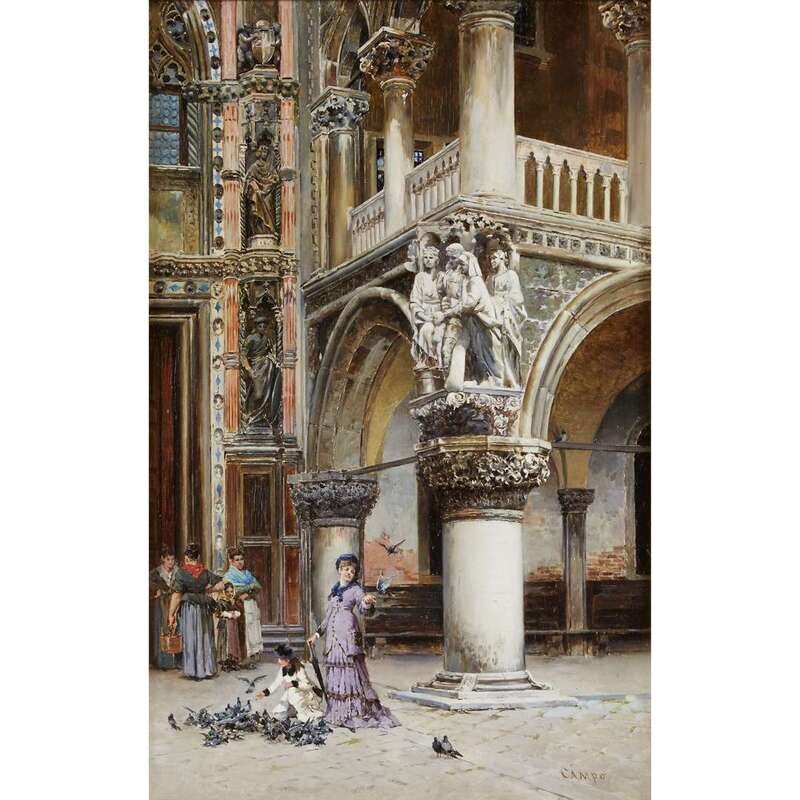FEDERICO DEL CAMPO (PERUVIAN 1837-1927) FEEDING THE PIGEONS OUTSIDE SAINT MARCO'S BASILICA, VENICE