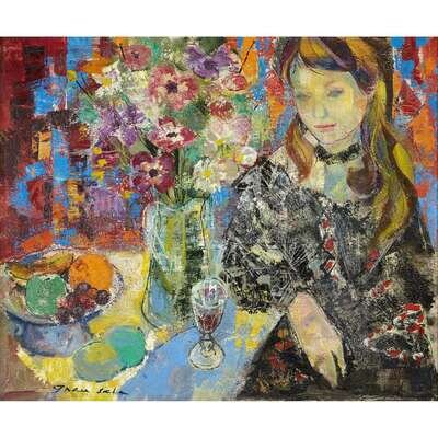 EMILIO GRAU SALA (SPANISH 1911-1975) SEATED GIRL WITH FLOWERS AND FRUIT