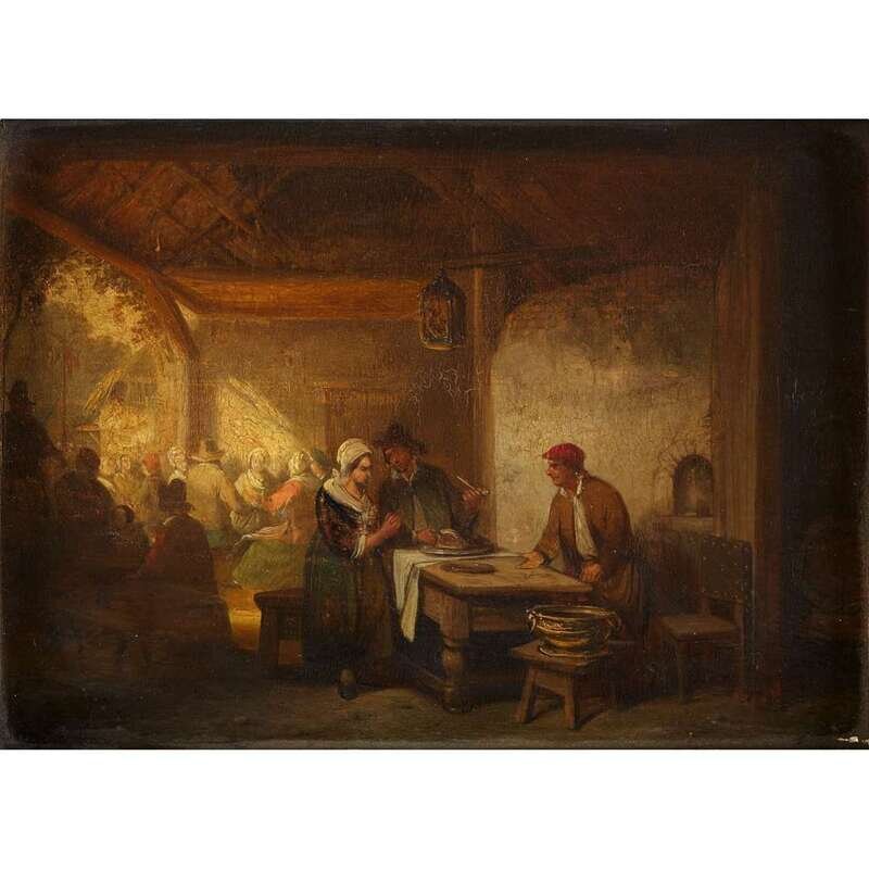 NORTHERN EUROPEAN SCHOOL (19TH CENTURY) INTERIOR WITH PEASANTS
