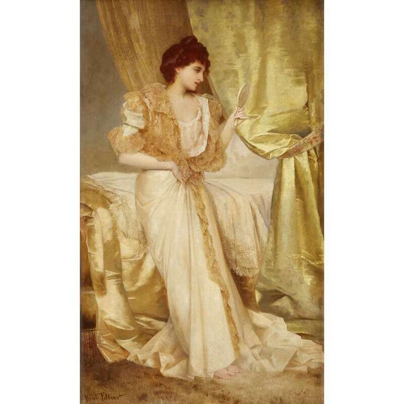 PAUL PROSPER TILLIER (FRENCH B. 1834) WOMAN HOLDING HAND MIRROR