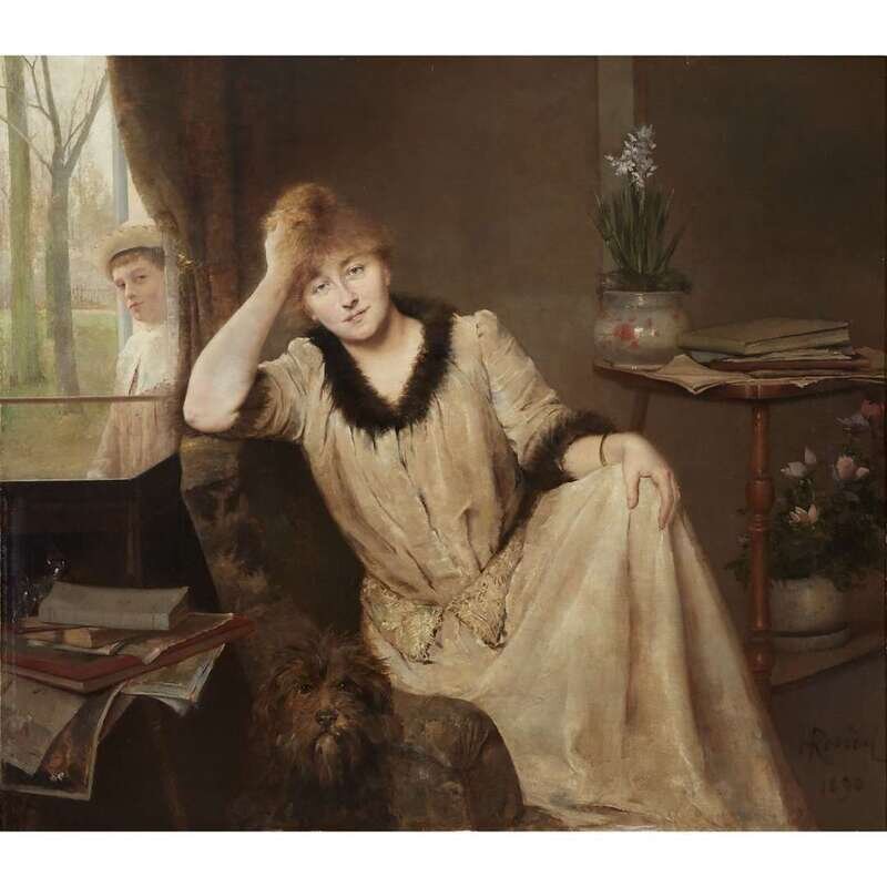 HENRI RONDEL (FRENCH 1857-1919) PORTRAIT OF A WOMAN IN AN ELEGANT INTERIOR
