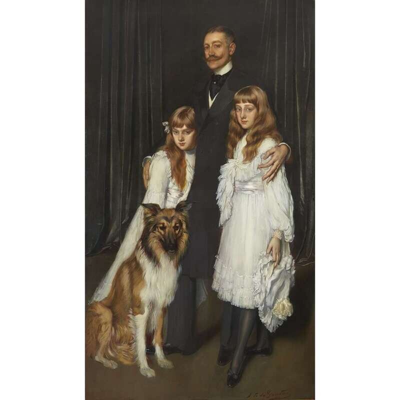 ANTONIO DE LA GANDARA (FRENCH 1862-1917) PORTRAIT OF A FAMILY WITH THEIR COLLIE