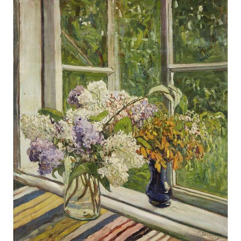 KONSTANTIN SEMIONOVICH VYSOTSKY (RUSSIAN 1864-1938) FLOWERS BY AN OPEN WINDOW