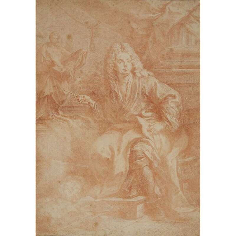 ATTRIBUTED TO NICOLAS DE LARGILLIÈRE (FRENCH 1656-1746) PORTRAIT OF THE SCULPTOR PIERRE LEGROS WITH HIS MODEL OF SAINT BARTHOLOMEW AT SAN GIOVANNI IN LATERANO, ROME