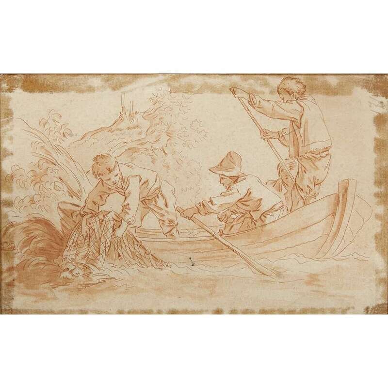FRENCH SCHOOLFRANZ GAREISFRENCH SCHOOL (18TH CENTURY)(GERMAN 1775-1803)(EARLY 19TH CENTURY) HAULING IN THE CATCHWOMAN AND CHILD WITH BASKETSEATED WOMAN