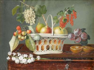 ATTRIBUTED TO GIOVANNA GARZONI (ITALIAN 1600-1670) STILL LIFE WITH MIXED FRUITS IN A RETICULATED BASKET