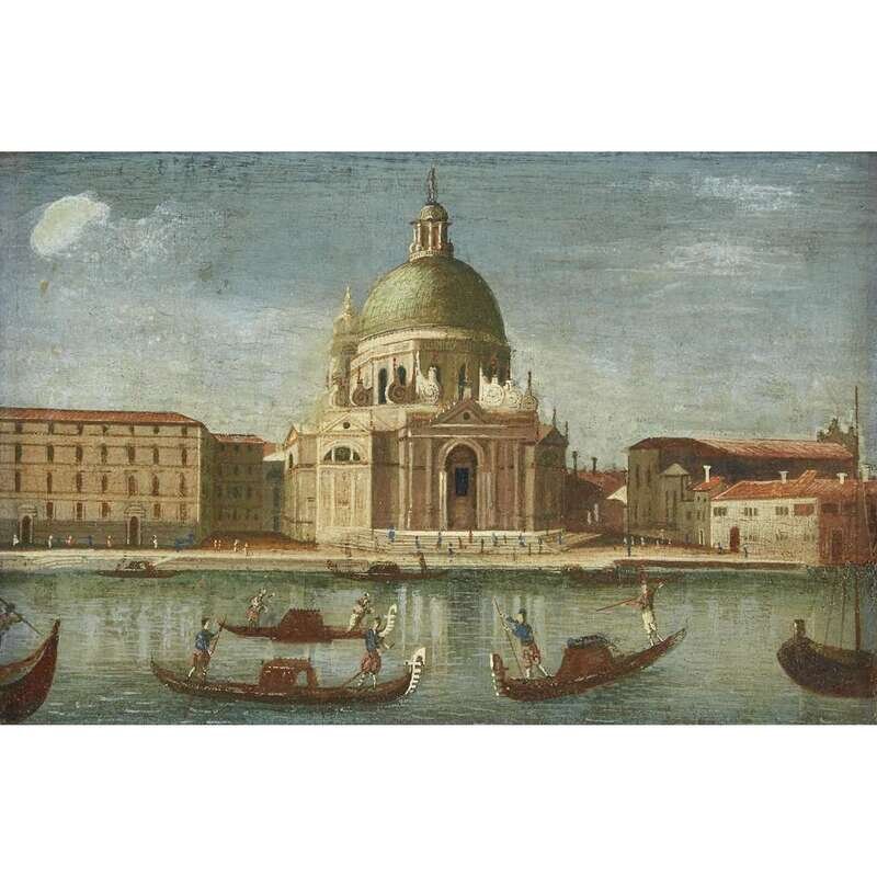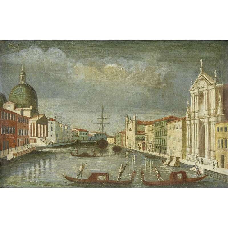 MANNER OF CANALETTO (ITALIAN 1697-1768) THE GRAND CANAL LOOKING SOUTHWEST TO THE FONDAMENTA DELLA CROCE WITH THE CHURCHES OF SAN SIMONE PICCOLO, THE SCALZI AND SANTA LUCIA; AND A COMPANION